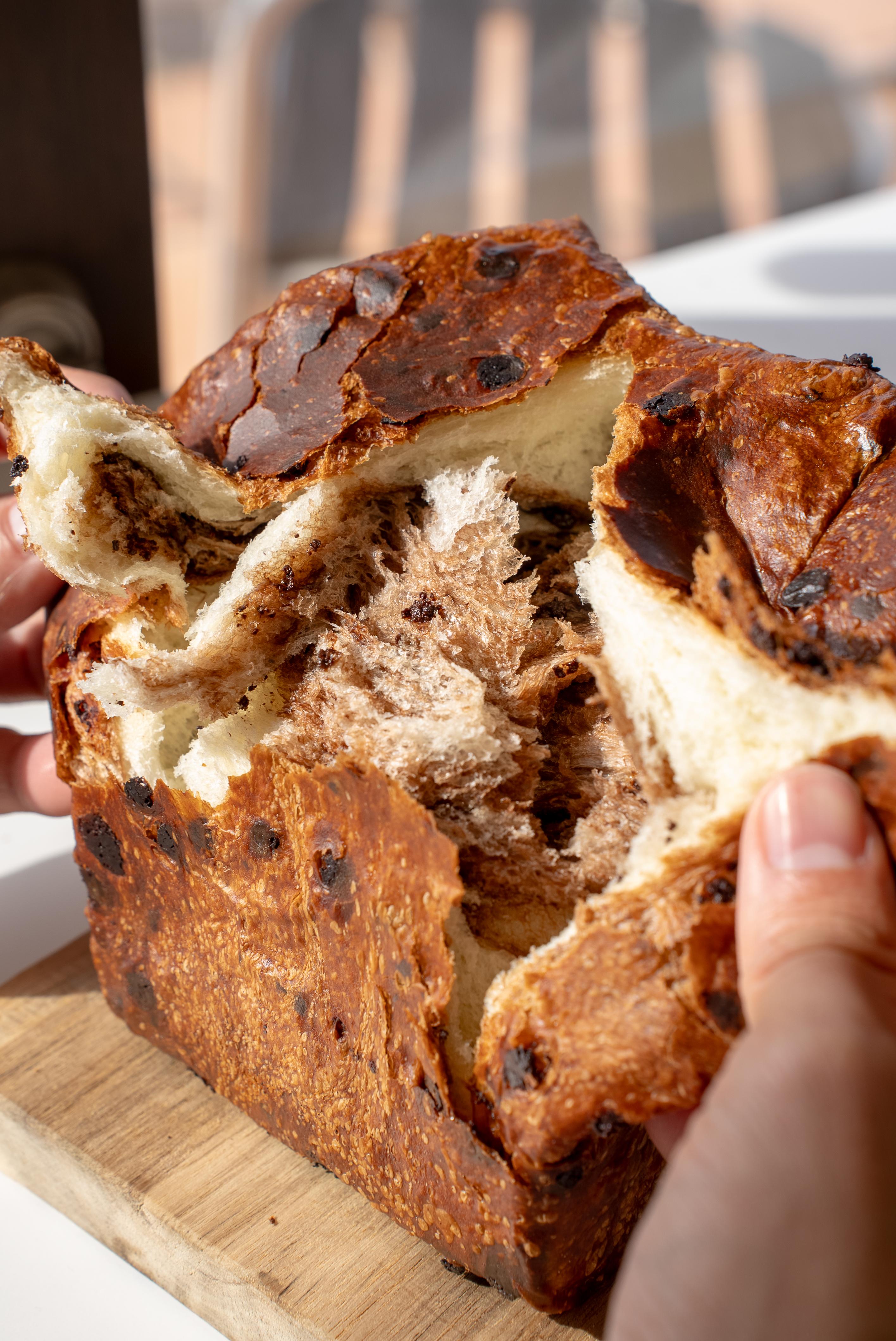 割ると広がるチョコの層。チョコマナレイア食パンがマーブル状になってます。