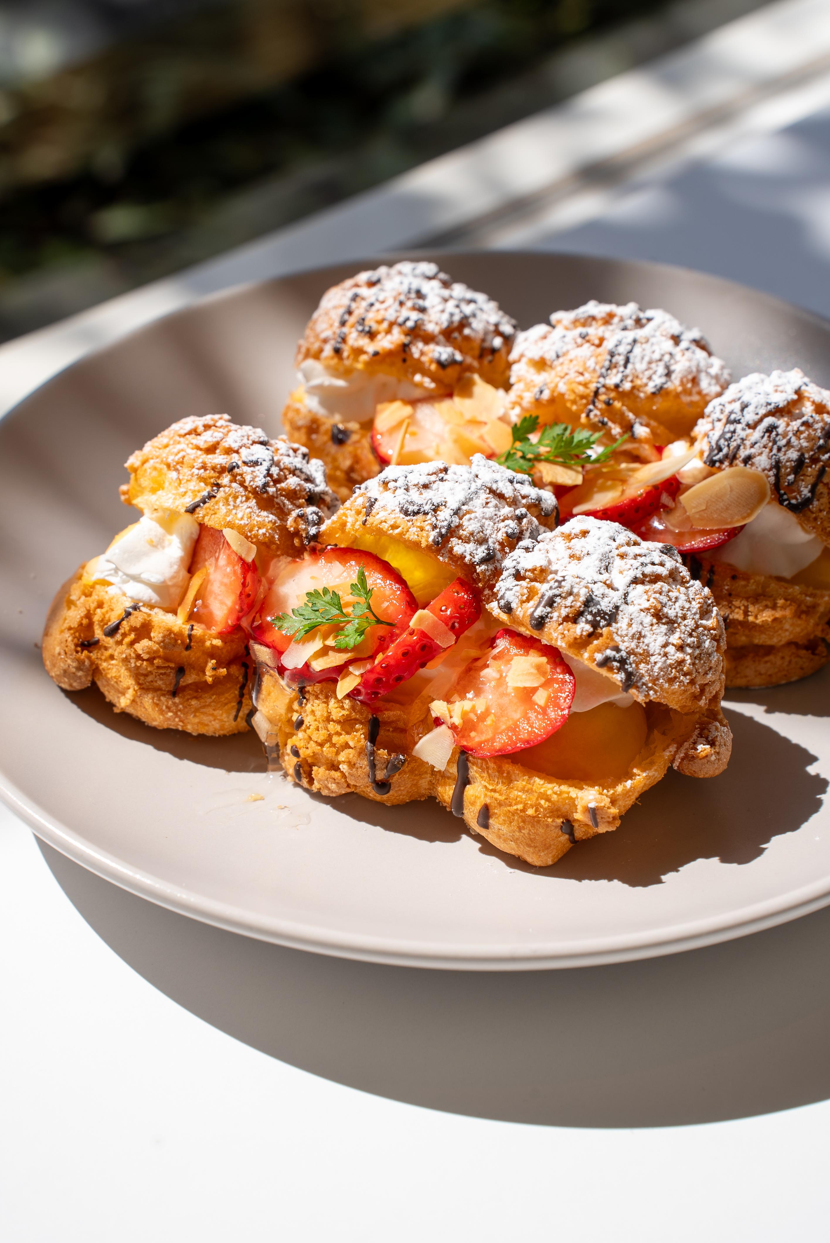 もこもこ可愛いトリオのクッキーシューです!カスター、ホイップクリーム、福嶋さんのいちごをはさんでます!