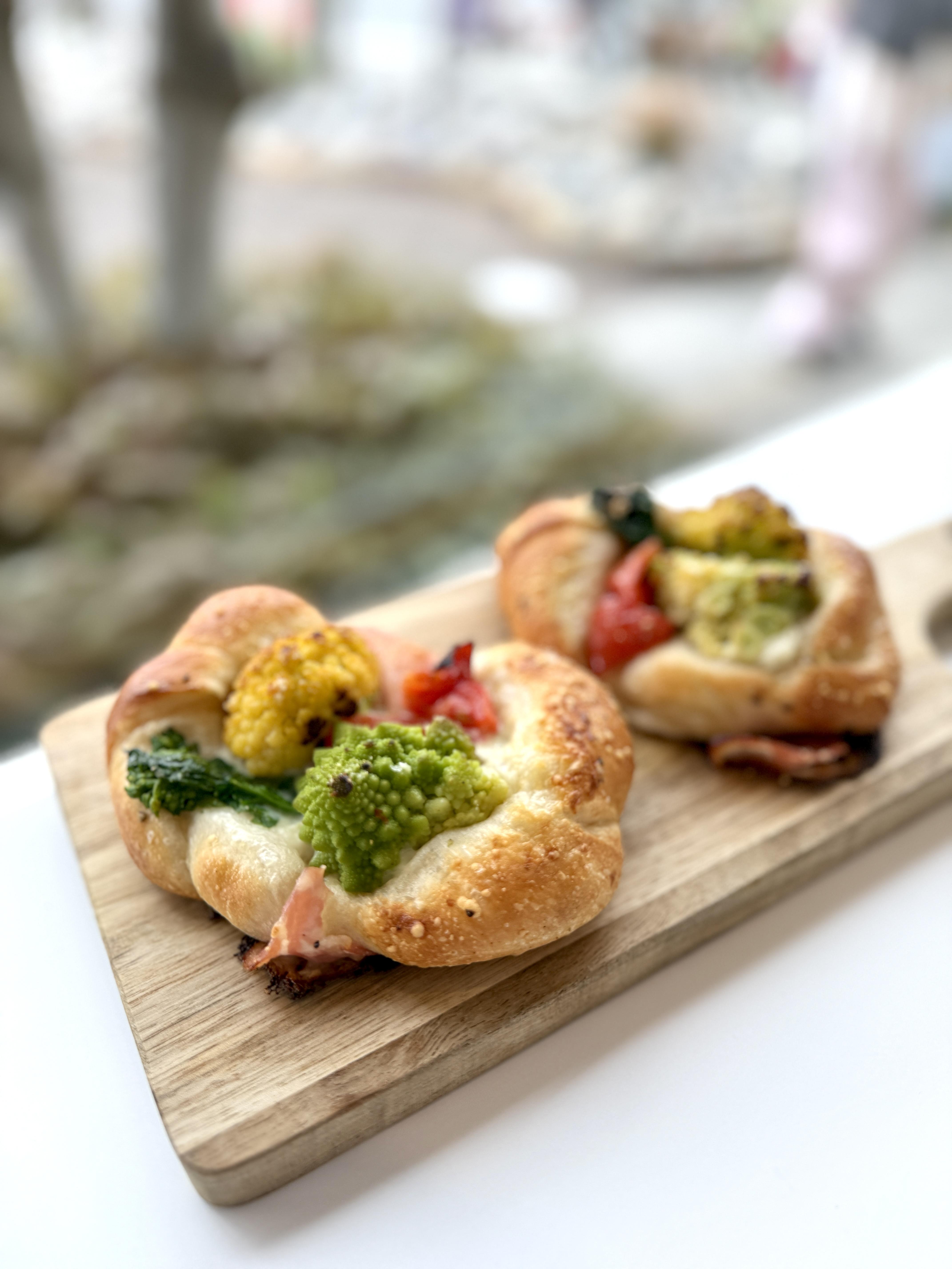 ベーコンを巻き込んだ生地に、旬の地元野菜をふんだんに使ってベジたべる!!