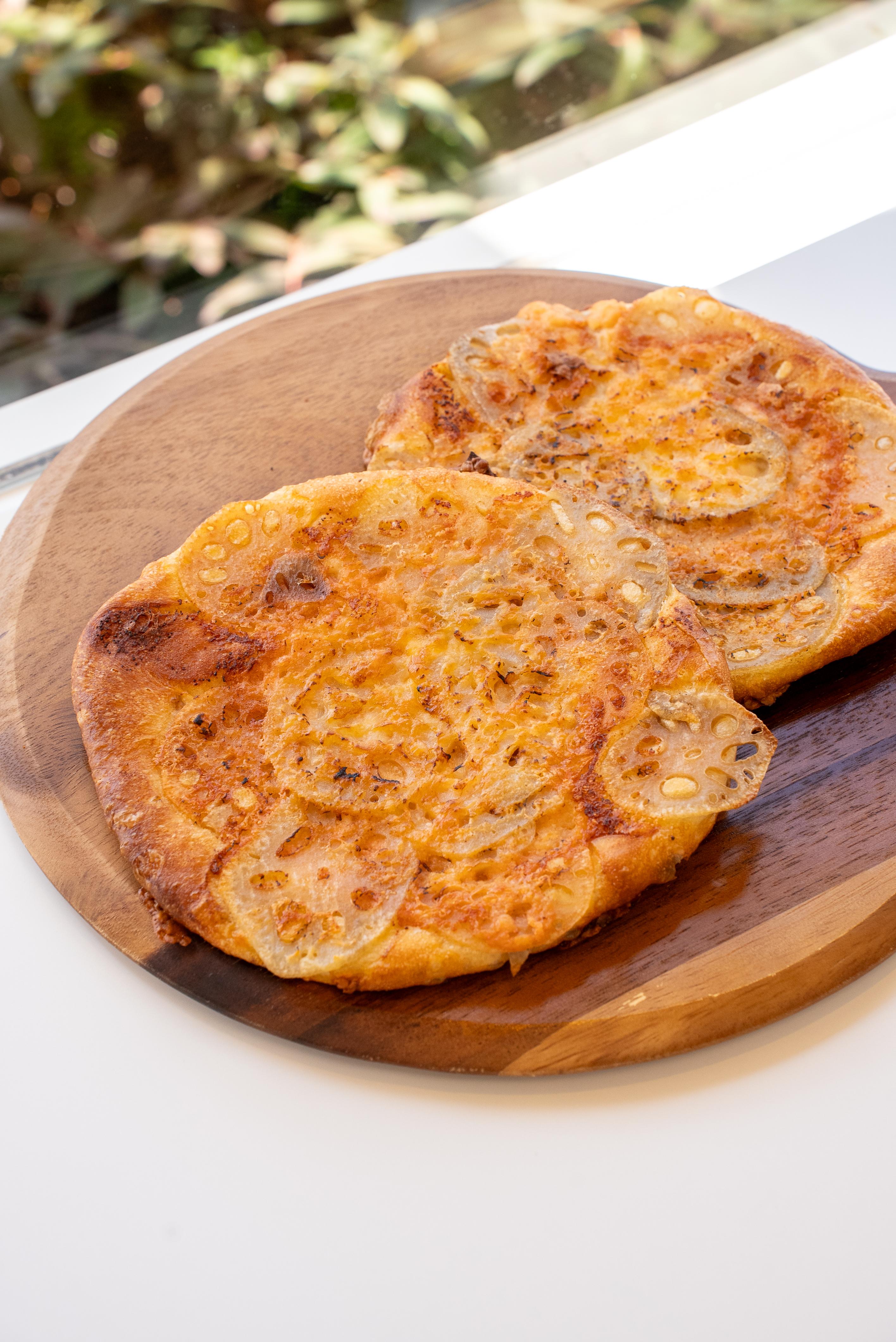稲美町花房ファームさんのれんこんをたっぷり使用しました。シャキパリ食感のレンコンとチーズの相性間違いなし!!